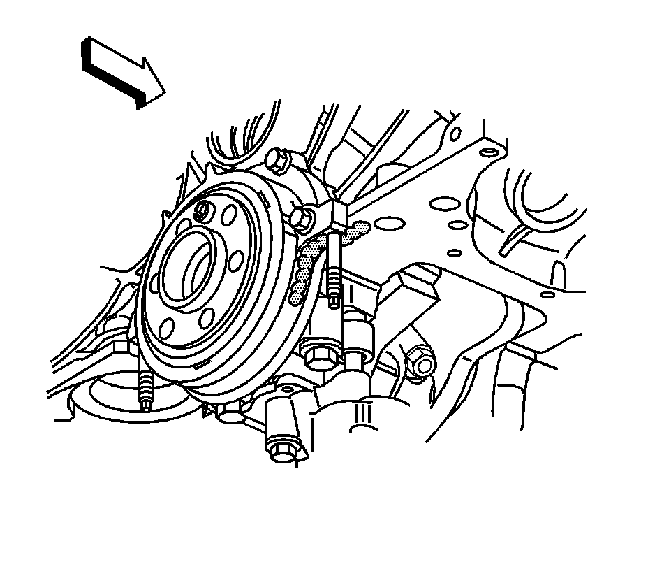 1. Apply a 5 mm (0.197 inch) wide and 25 mm (1.0 inch) long bead of adhesive GM P/N 12346141, (Canadian P/N 10953433), or equivalent to both the right and left sides of the front cover to engine block junction at the oil pan sealing surfaces.