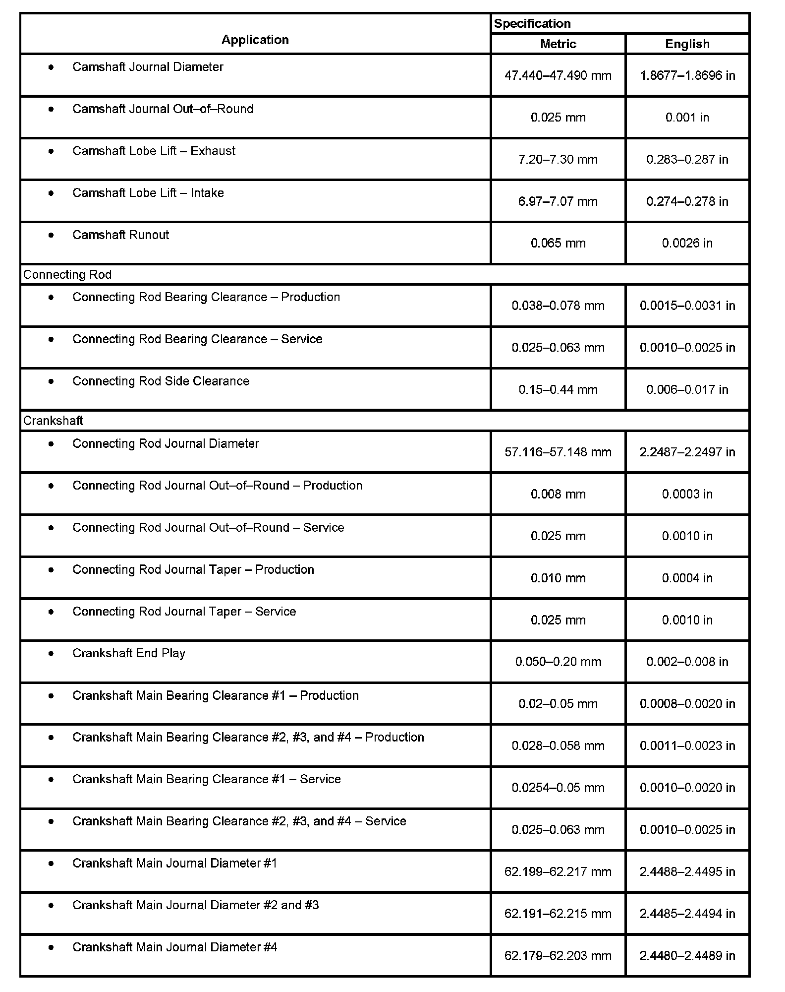 Engine Mechanical Specifications, Part 3: