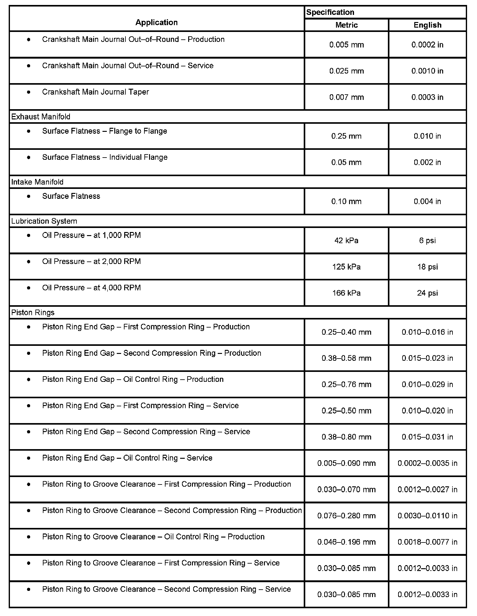 Engine Mechanical Specifications, Part 5: