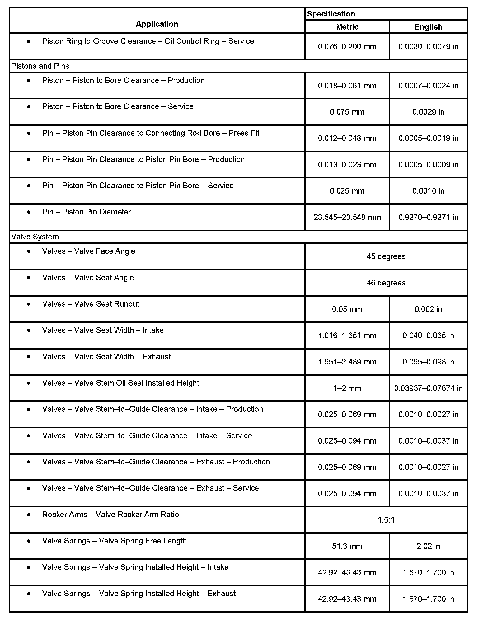 Engine Mechanical Specifications, Part 2: