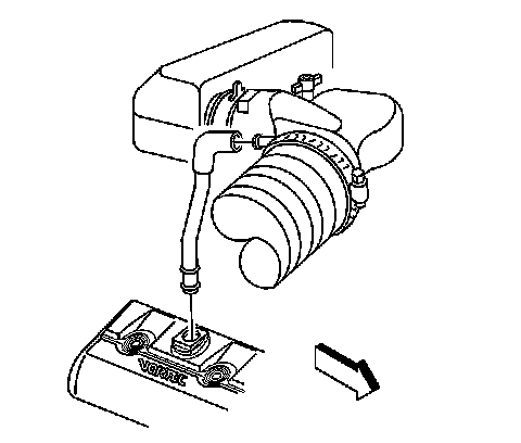 12. Align the hinge clip with the lip on the throttle body.In order to install the air cleaner outlet duct, pivot the air cleaner outlet duct downward until the mounting stud is through the hole.