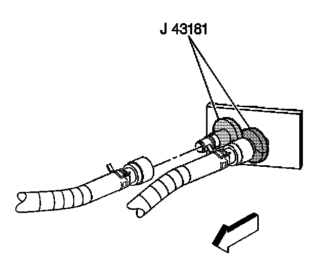 3. Using the J 43181 disconnect the heater hose from the heater core outlet.