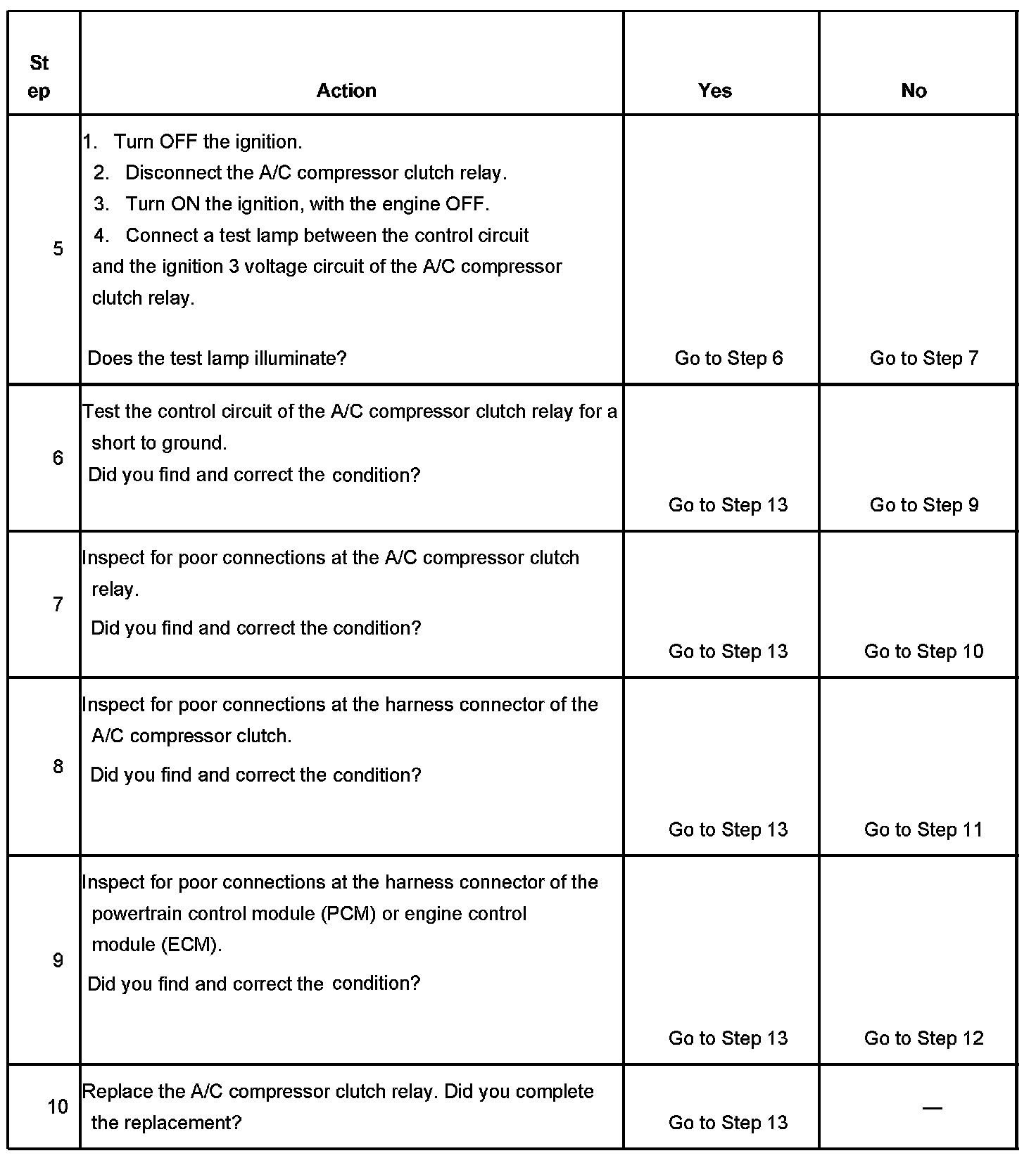 The number below refers to the step number on the diagnostic table.