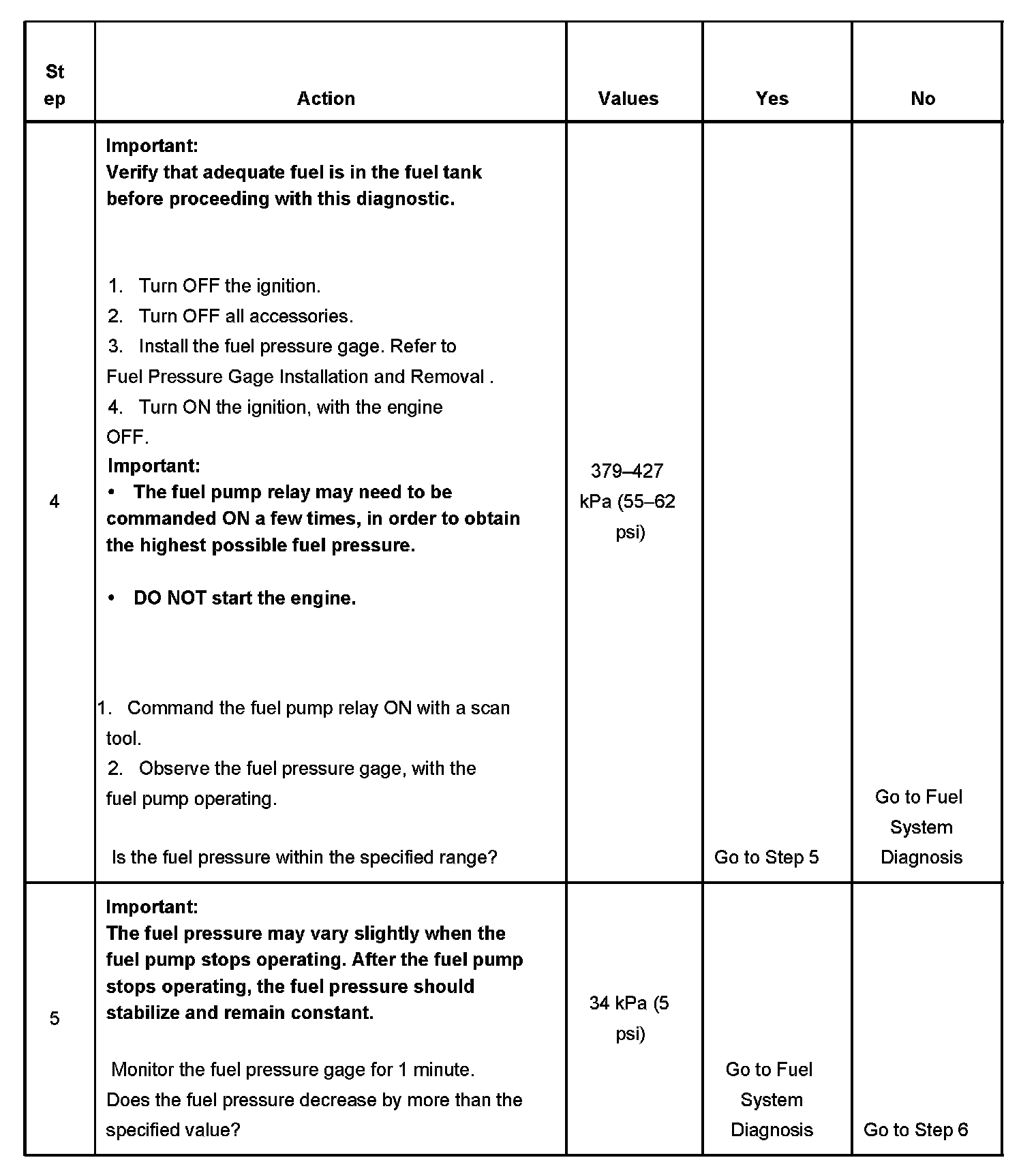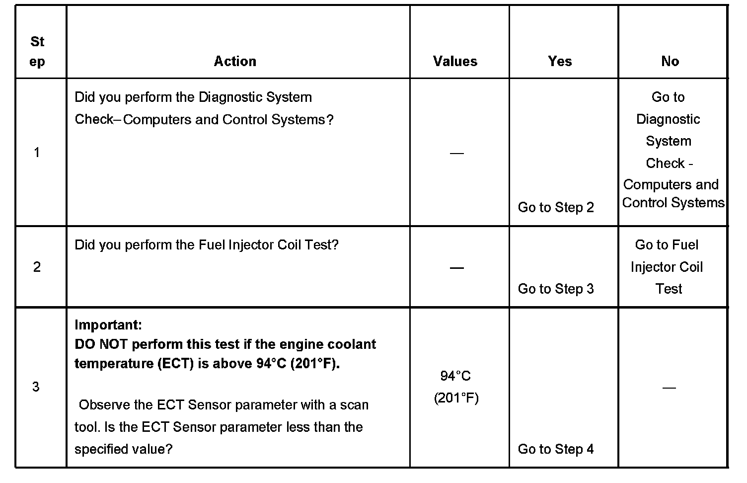 3. The engine coolant temperature (ECT) must be below the operating temperature in order to avoid irregular fuel pressure readings due to hot soak fuel boiling.