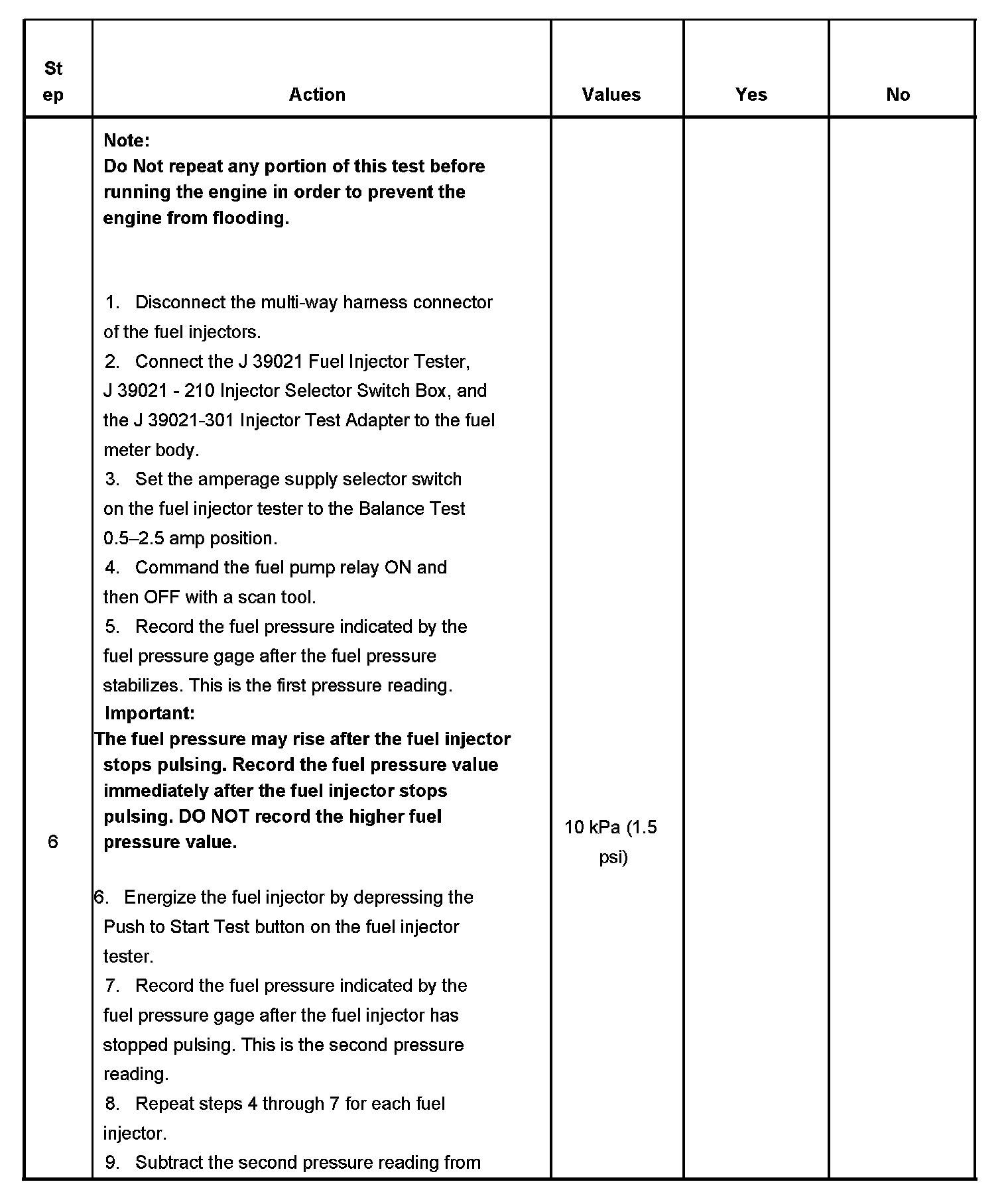 Fuel Injector Balance Test Example (Typical):