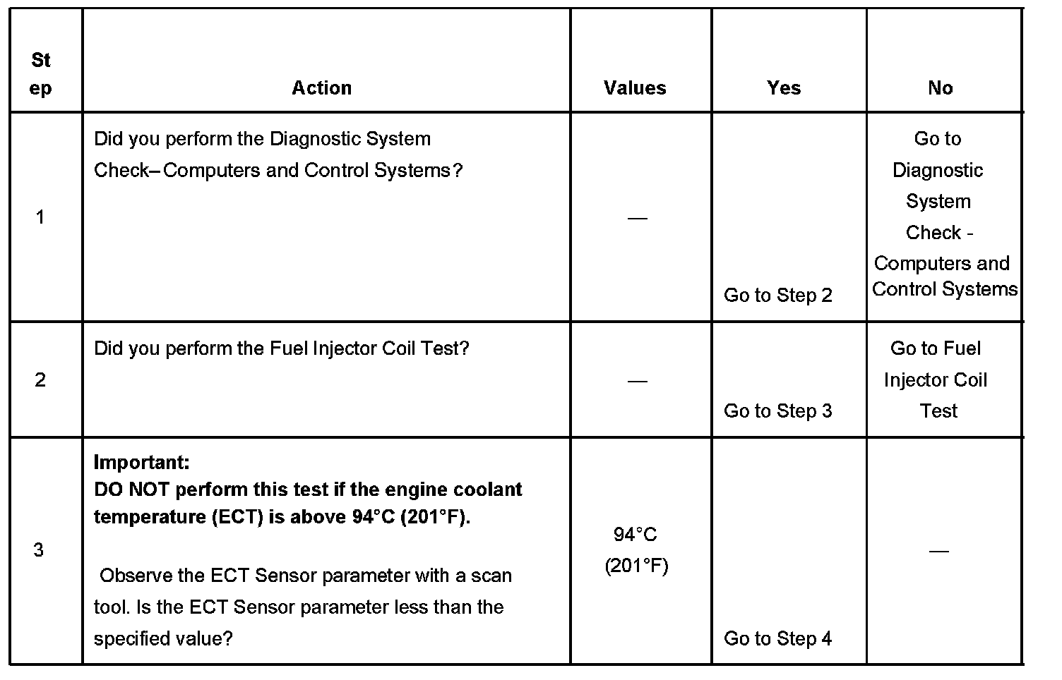 3. The engine coolant temperature (ECT) must be below the operating temperature in order to avoid irregular fuel pressure readings due to hot soak fuel boiling.