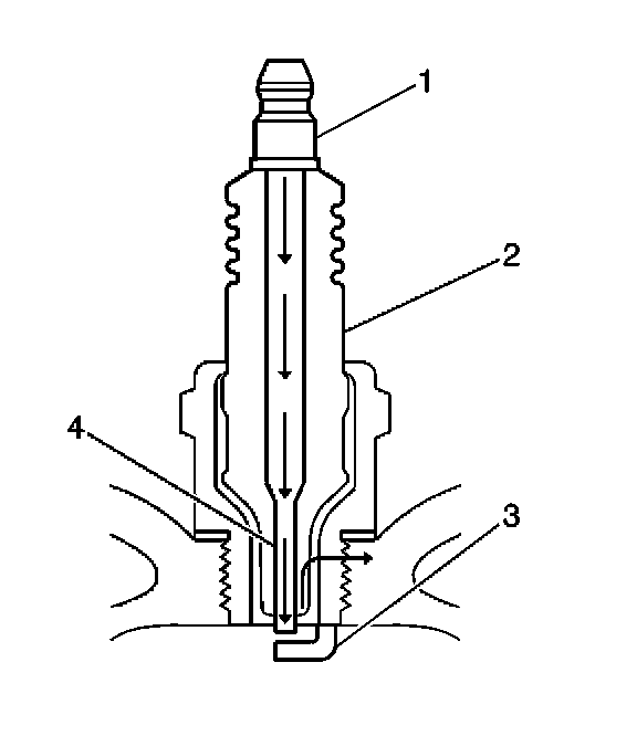 - Inspect for signs of tracking that occurred near the insulator tip instead of the center electrode (4).