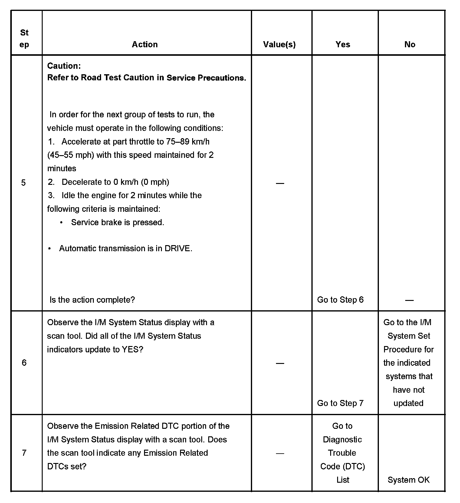 The purpose of the I/M Complete System Set Procedure is to satisfy the enable criteria necessary to execute all of the I/M readiness diagnostics, and complete the trips for those particular diagnostics. When all diagnostic tests are completed, the I/M System Status indicators are set to YES. Perform this test when more than one or all of the I/M System Status indicators are set to NO.