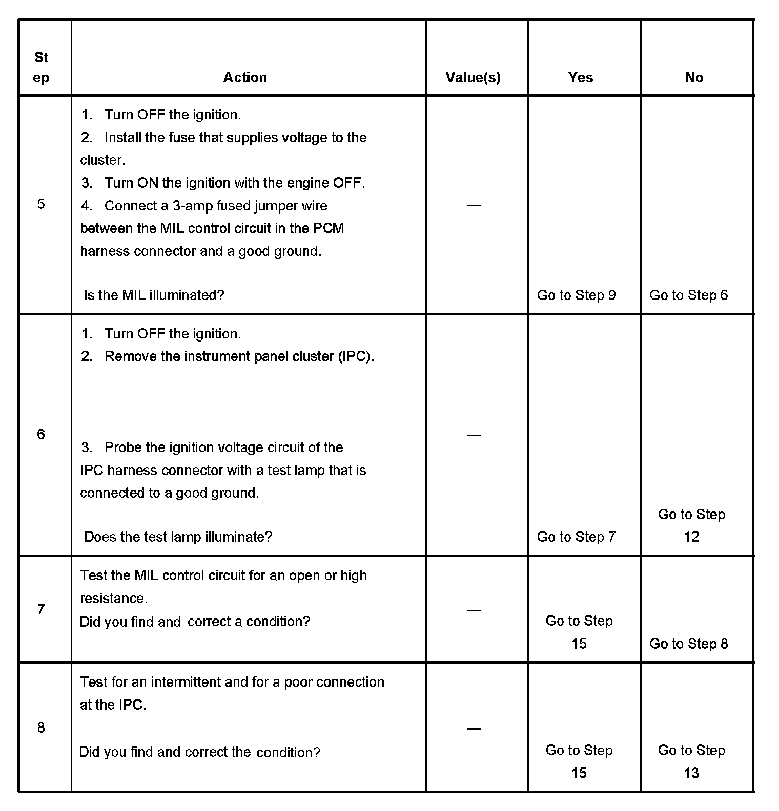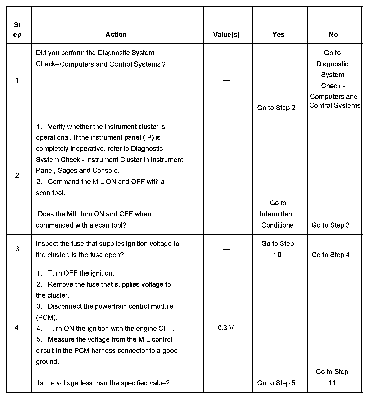 4. This step tests for a short to voltage on the MIL control circuit. With the fuse removed there should be no voltage on the MIL control circuit.