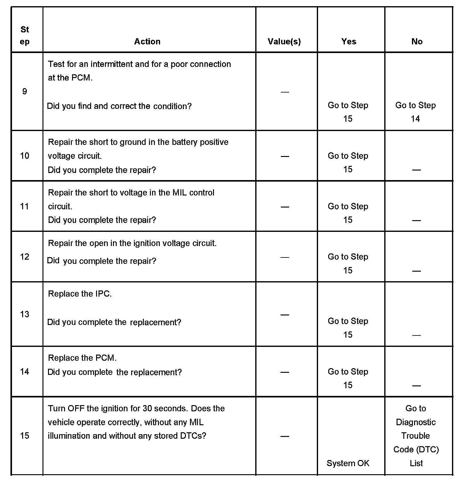 The number below refers to the step number on the diagnostic table.