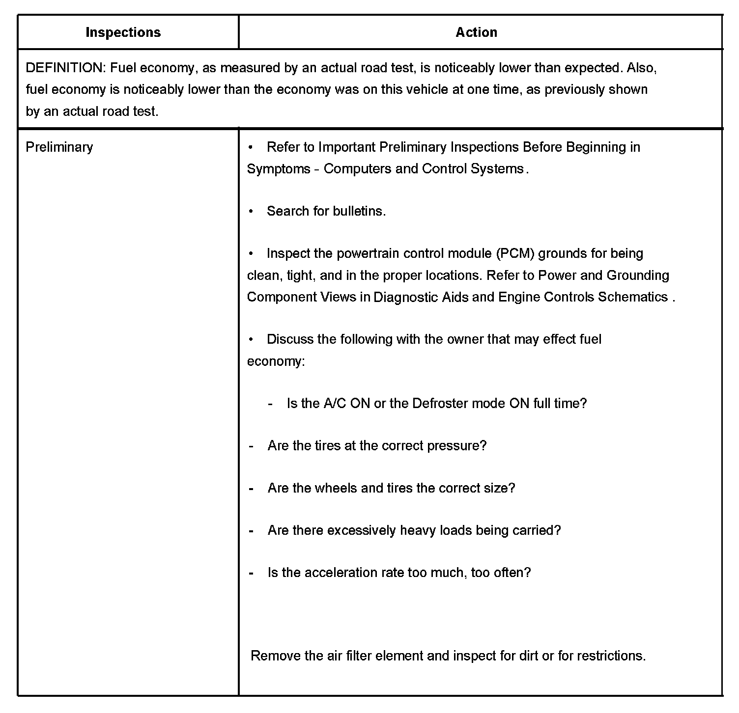 Poor Fuel Economy