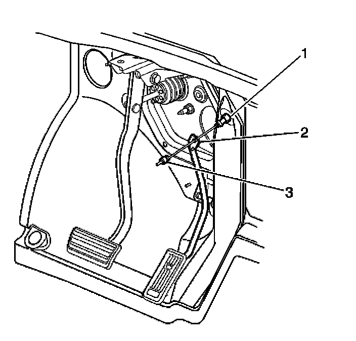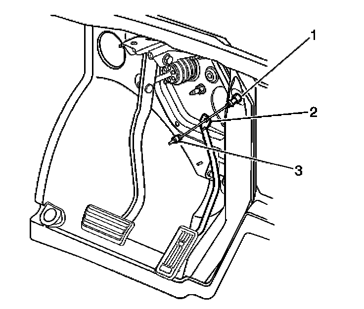 2. Unseat the accelerator cable retainer (3) from the accelerator pedal lever (2).