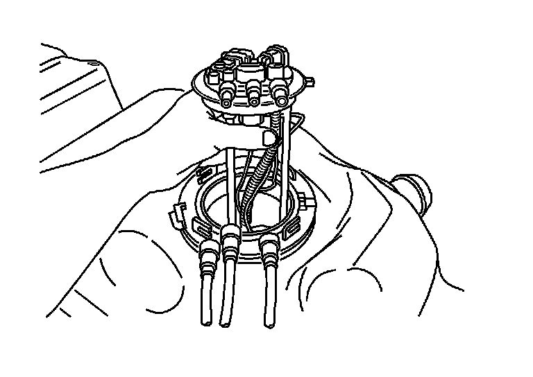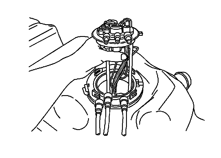 NOTE: Do Not handle the fuel sender assembly by the fuel pipes. The amount of leverage generated by handling the fuel pipes could damage the joints.
