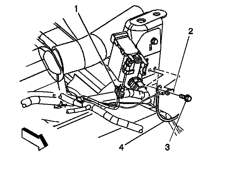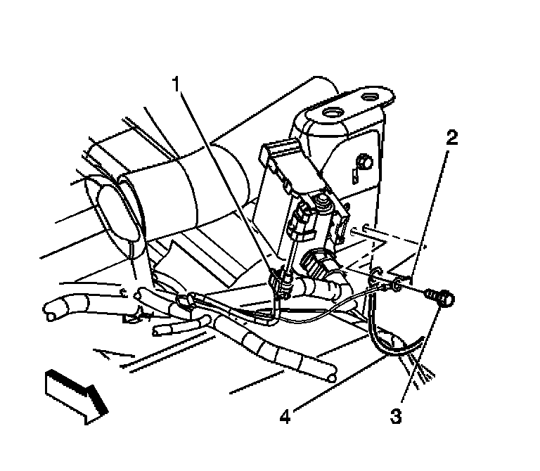 9. Remove the chassis harness ground strap (2) and fuel tank ground strap (4).