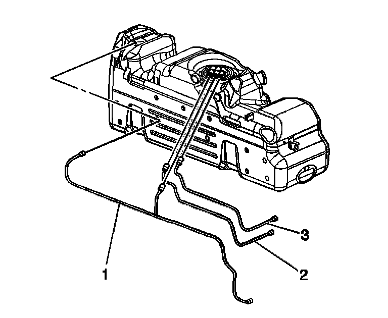 3. Install and connect the fuel feed (3) and return (2) pipes to the sending unit and retaining clips.