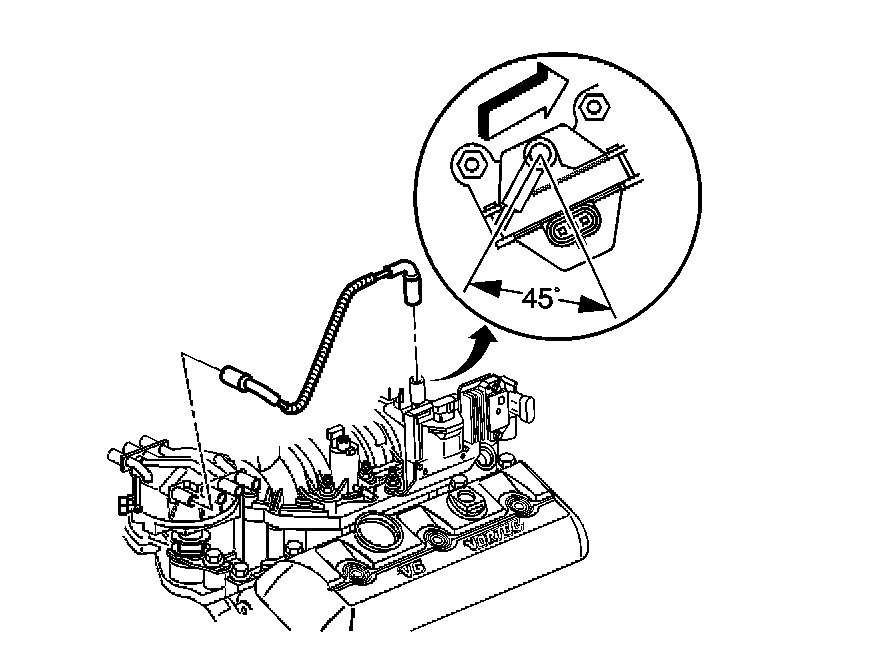 IMPORTANT: The coil wire nipple must be positioned such that it is between 35 and 60 degrees aft of perpendicular as referenced from the engine centerline on the outboard side of the coil.
