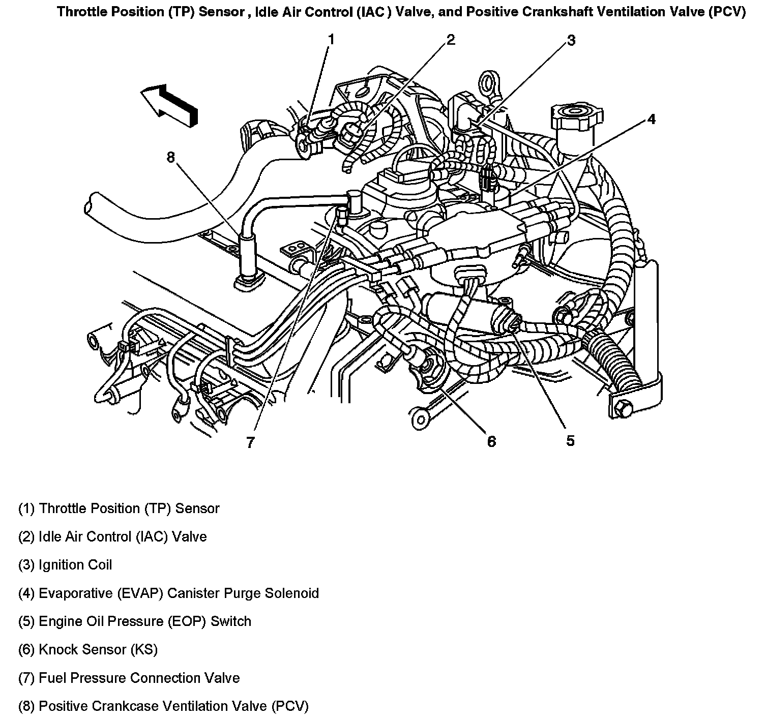 Throttle Position (TP) Sensor, Idle Air Control (IAC) Valve, and Positive Crankcase Ventilation Valve(PCV):