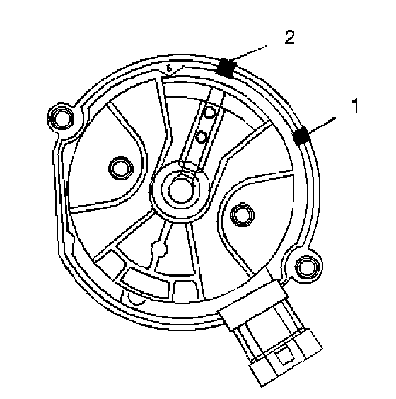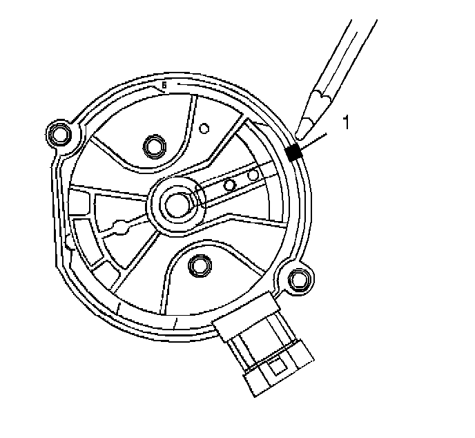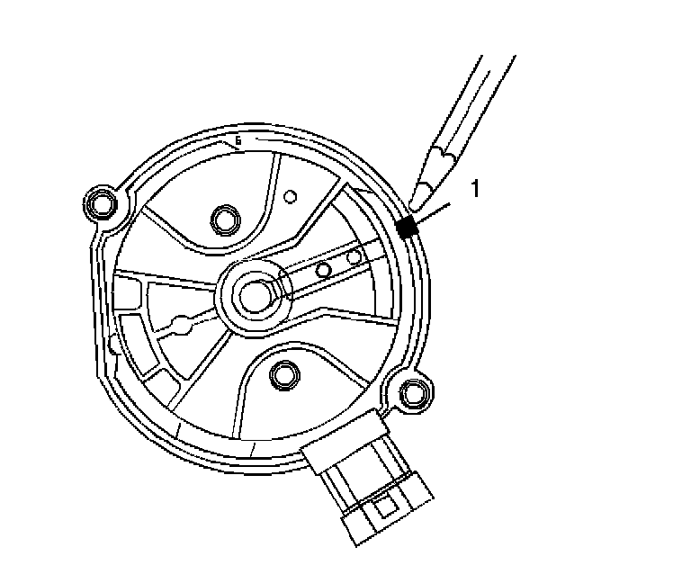 7. Using a grease pencil, mark the position of the rotor in relation to the distributor housing (1).