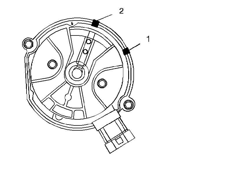 6. Once the distributor is completely seated, the rotor segment should be aligned with the mark on the distributor base (1).