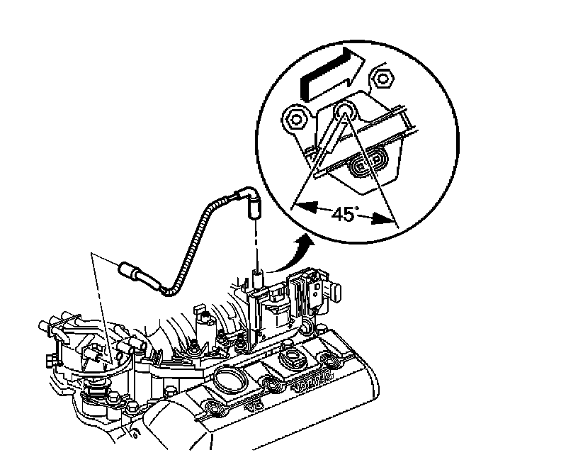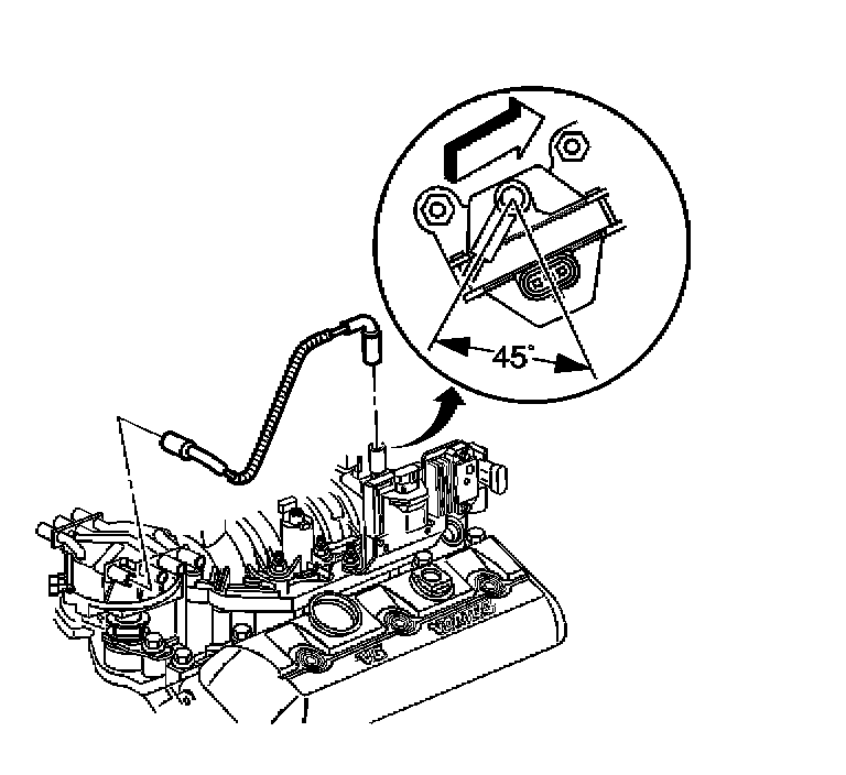 IMPORTANT: The coil wire nipple must be positioned such that it is between 35 and 60 degrees aft of perpendicular as referenced from the engine centerline on the outboard side of the coil.