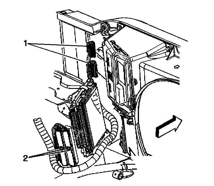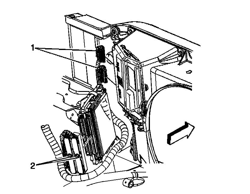 5. Loosen the PCM electrical connector bolts (2).