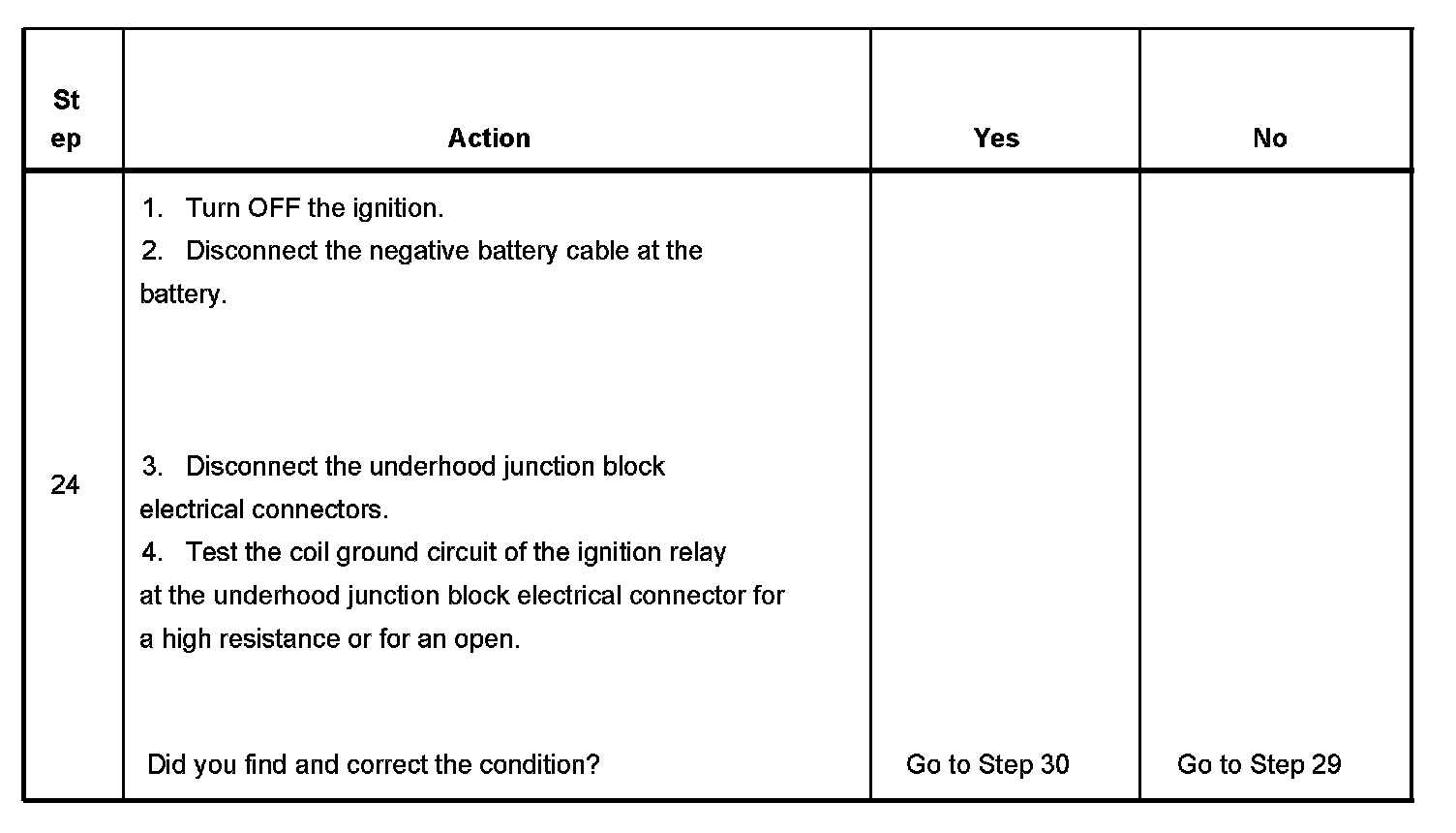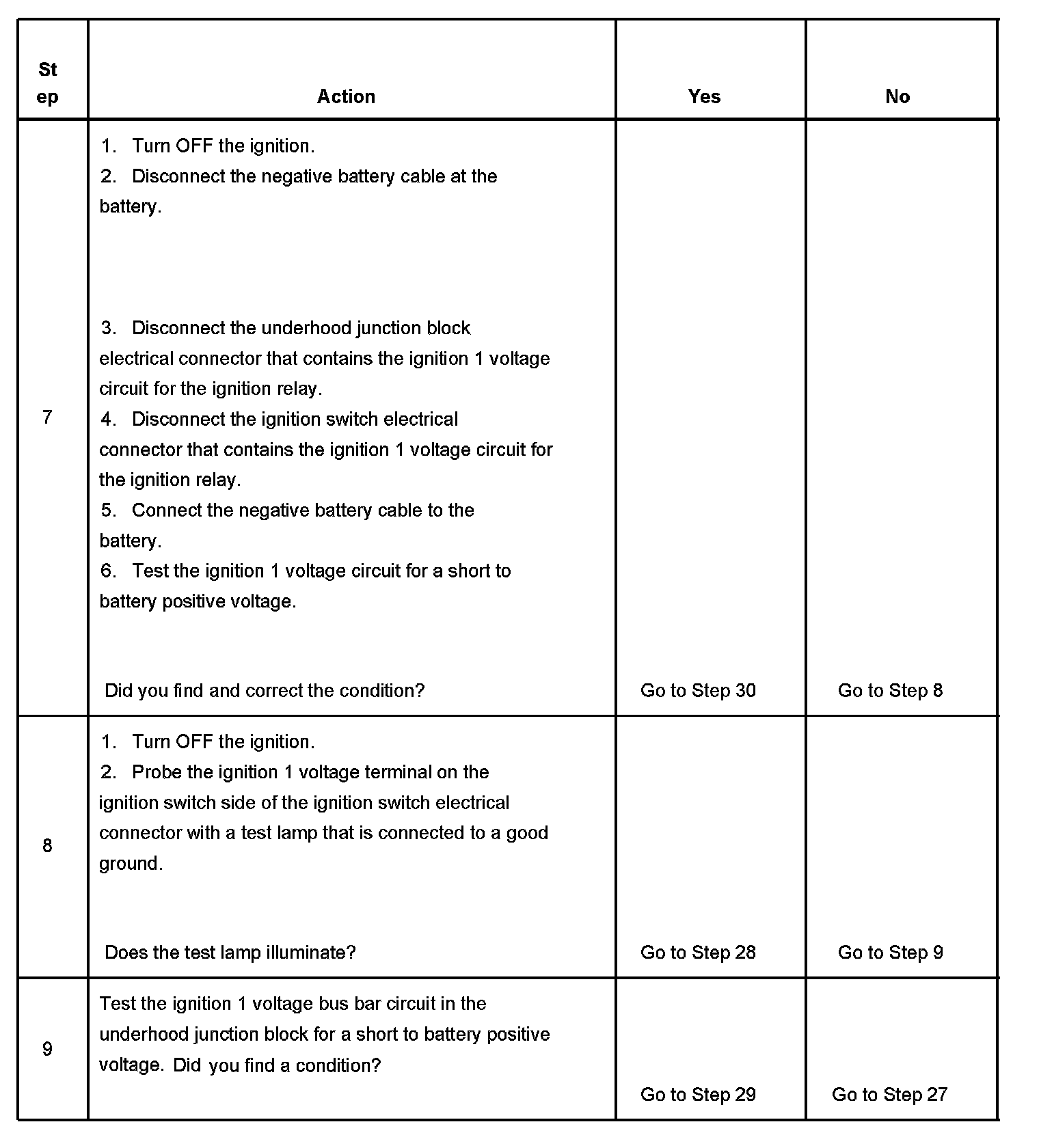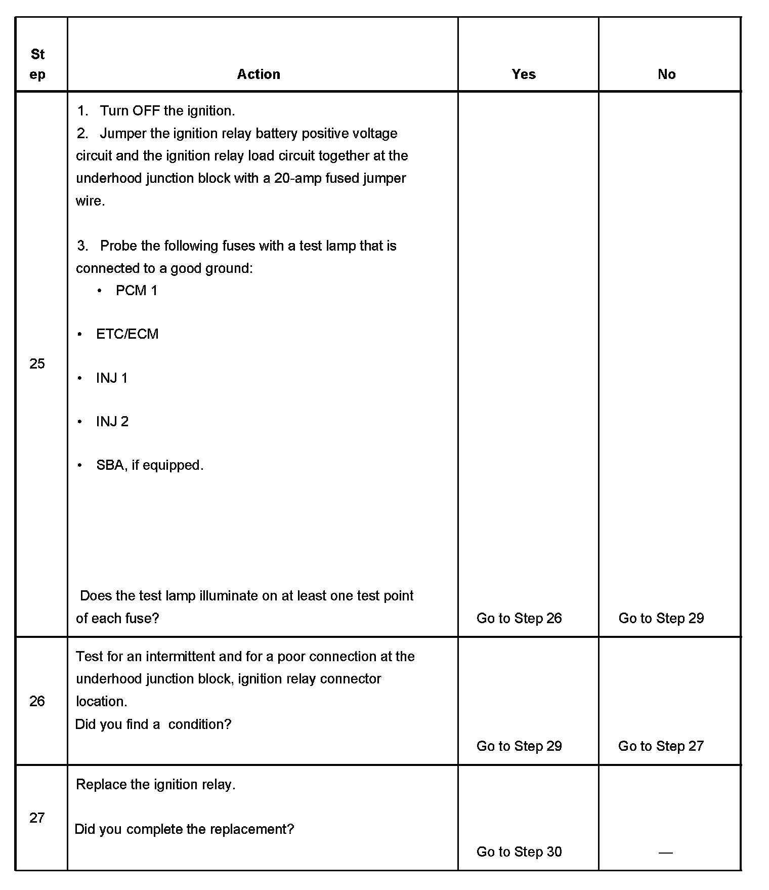 The ignition relay table assumes that the vehicle battery is fully charged.