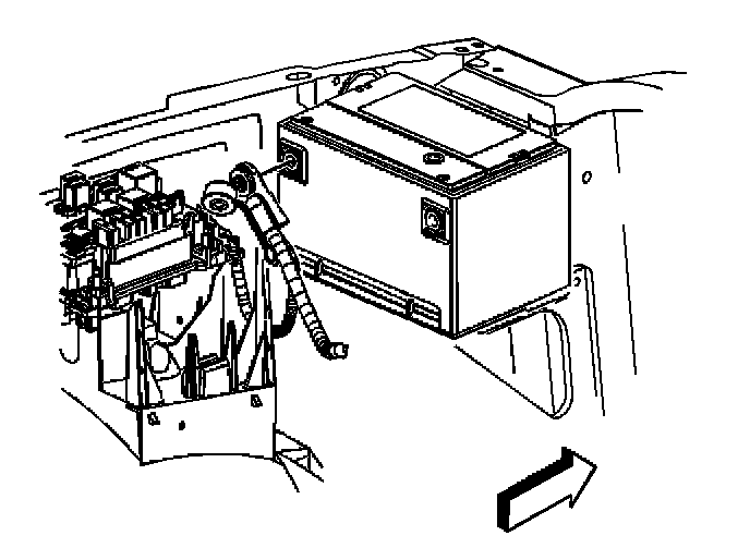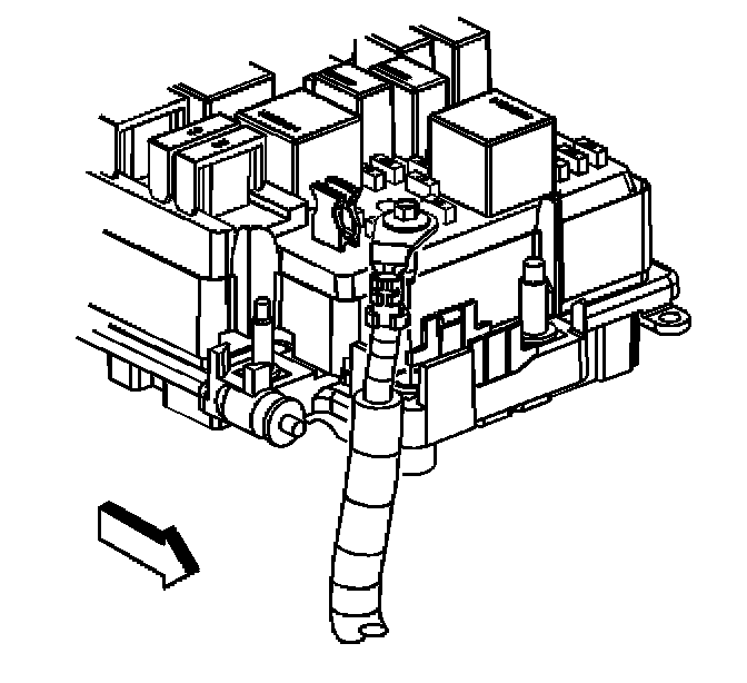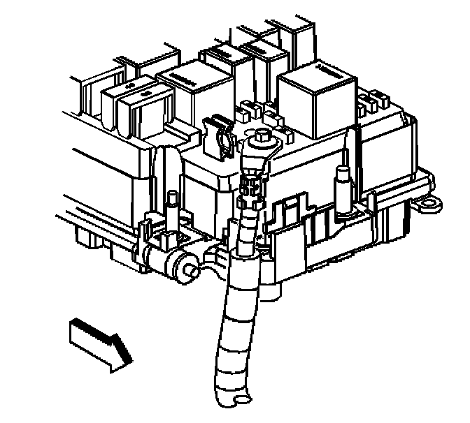 5. Loosen the positive cable bolt at the underhood bussed electrical center (UBEC).
