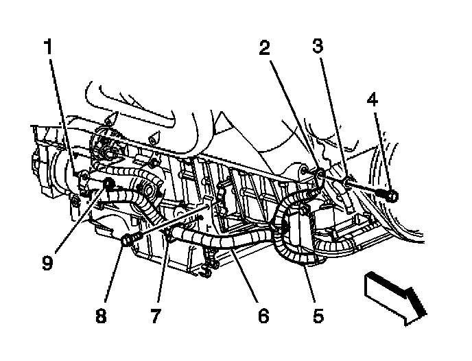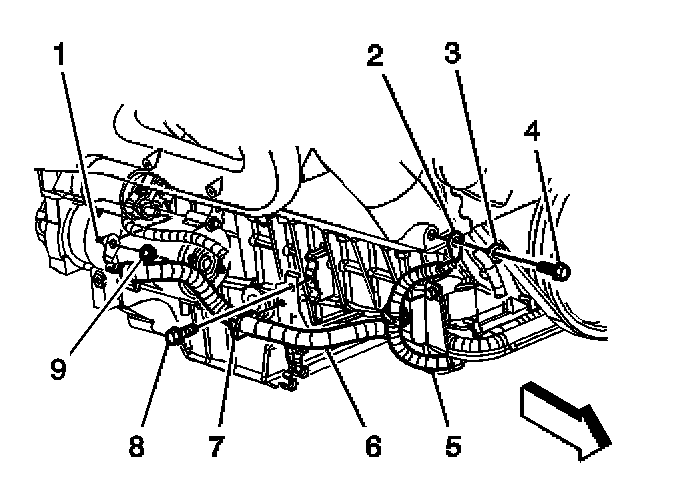 2. Install the positive cable to the clip (7) on the oil pan.
