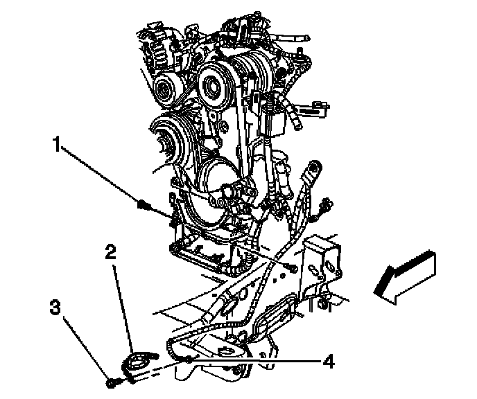 8. Remove the battery cable bracket bolt and bracket from the power steering pump.