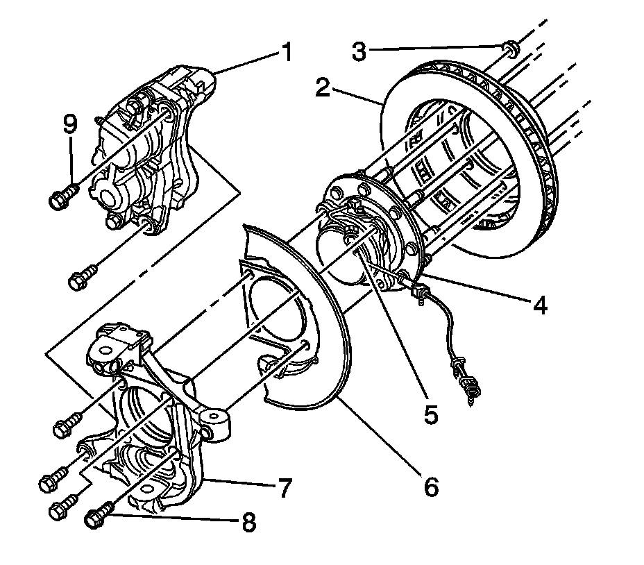 Remove the wheel speed sensor (5) from the hub/bearing assembly (4) shown on the 2500/3500 series.
