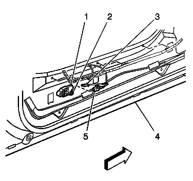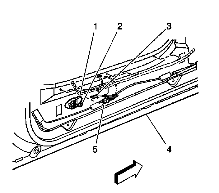1. Connect the inflatable restraint side impact sensor yellow 2-way harness connector (5) to the inflatable restraint side impact sensor (1).