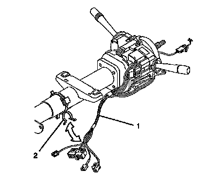 1. Install the turn signal and multifunction switch assembly (2) onto the steering column tilt head assembly.