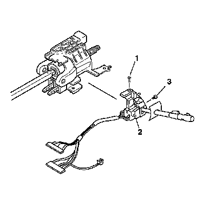 6. Remove the 2 pan head tapping screws (1) and (3) from the turn signal and multifunction switch assembly (2).