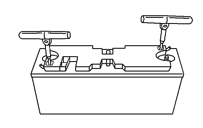 21. Install J 43679 , to the lifting points on the appropriate battery.