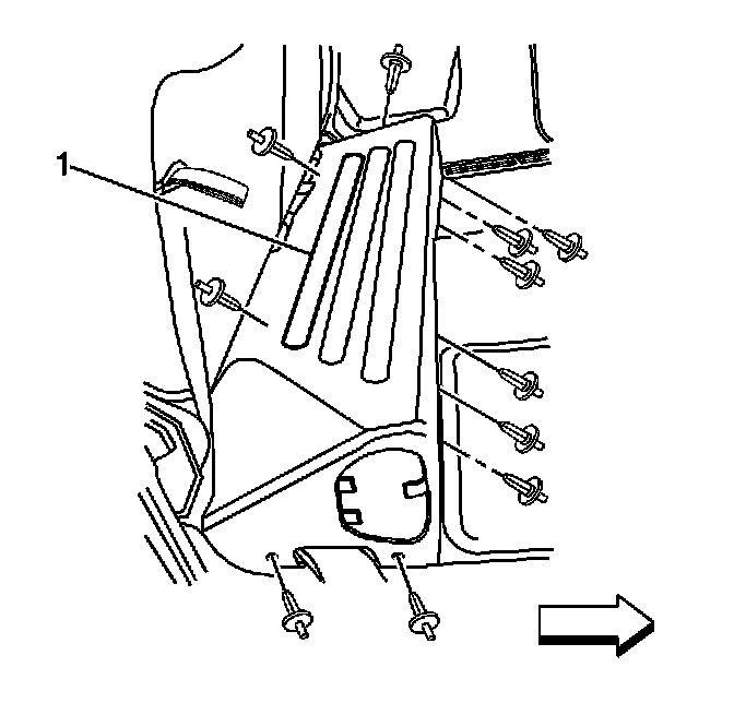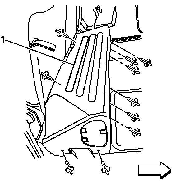 2. Remove the plastic pushpin retainers from the energy storage box (ESB) trim cover (1).