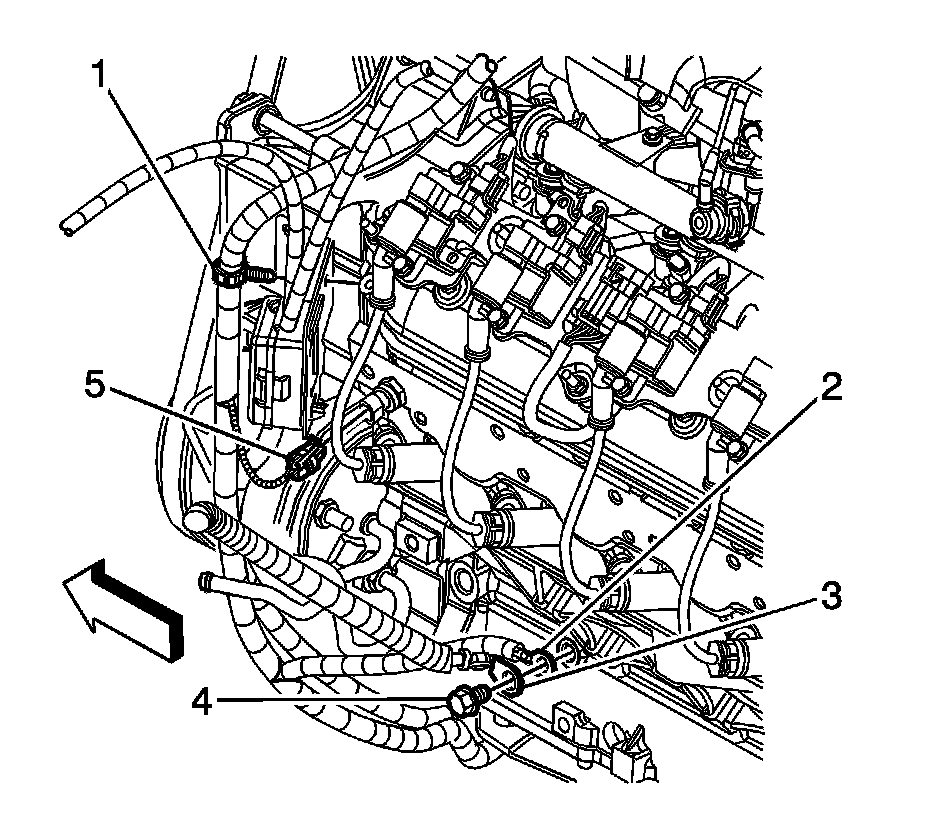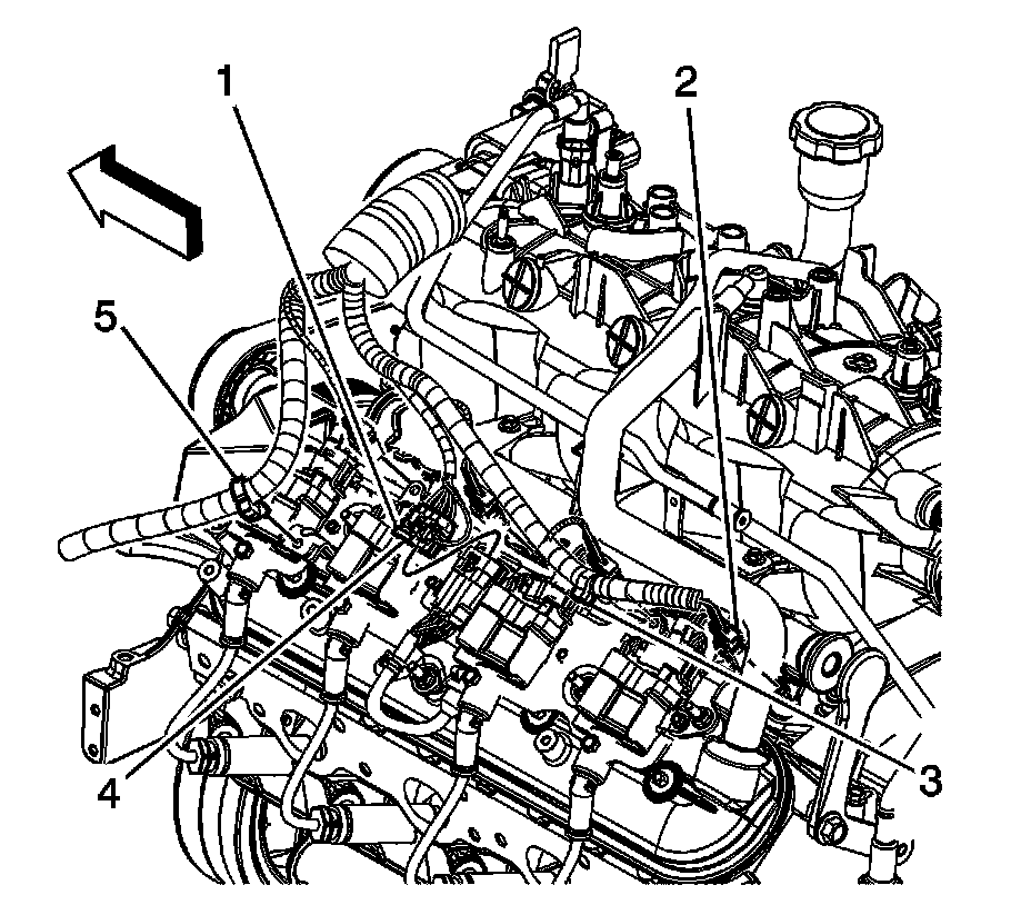 75. Install the harness clips (3, 5) to the fuel rail.