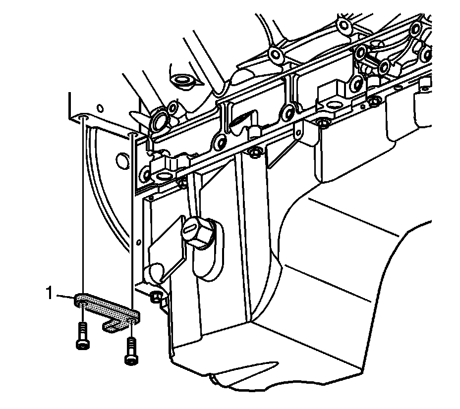 40. Install the power steering pump harness clip (1) to the bracket.
