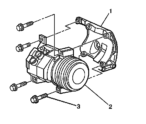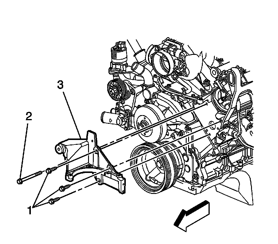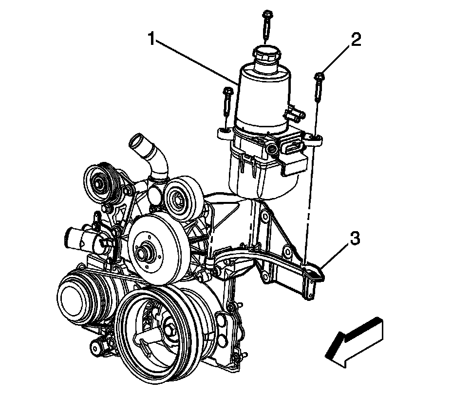 32. Install the power steering pump bracket (3) and bolts (1, 2).