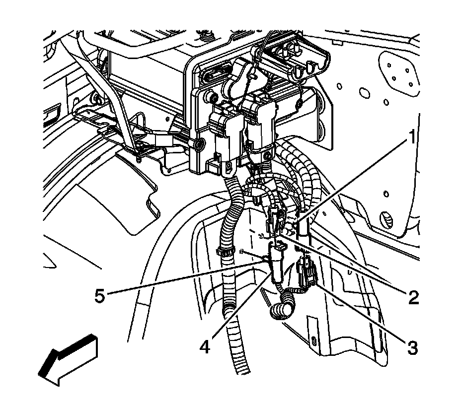 44. Install the power steering pump harness 42-volt connector (5) to the wheelhouse panel.