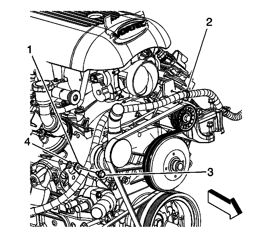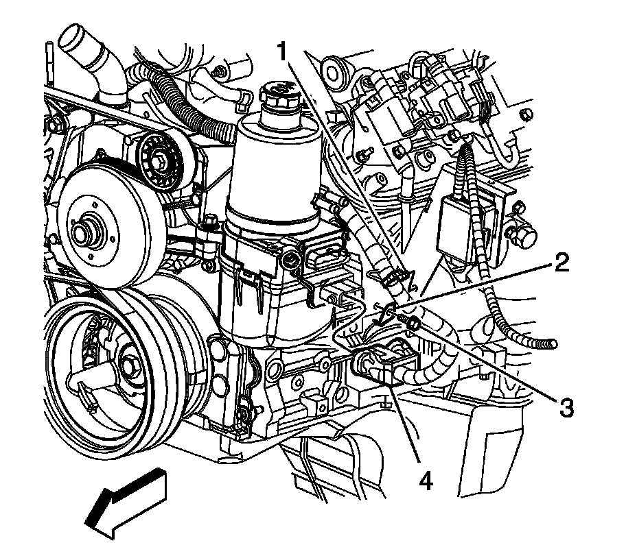 38. Connect the power steering pump harness electrical connector (4) to the power steering pump.