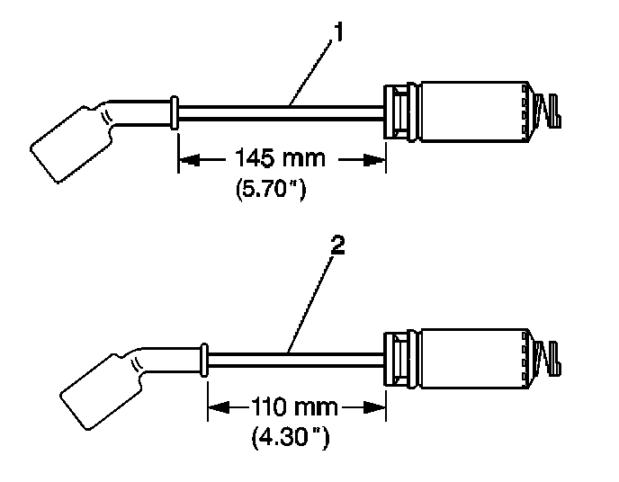 5. The Delphi(R) spark plug wire (2) will have a white foil mark on it, and the wire is 110 mm (4.30 in) in length cable seal to cable seal.