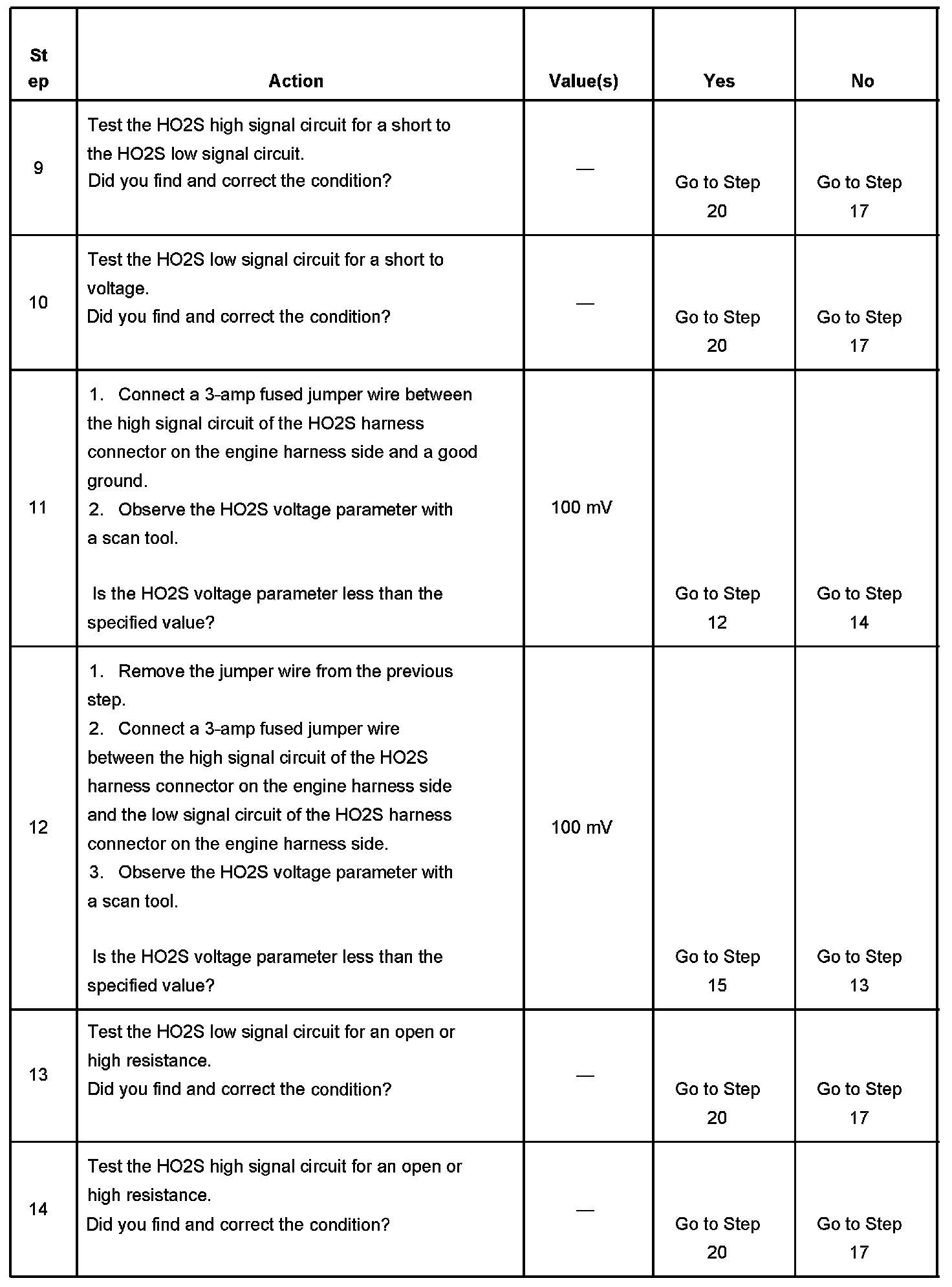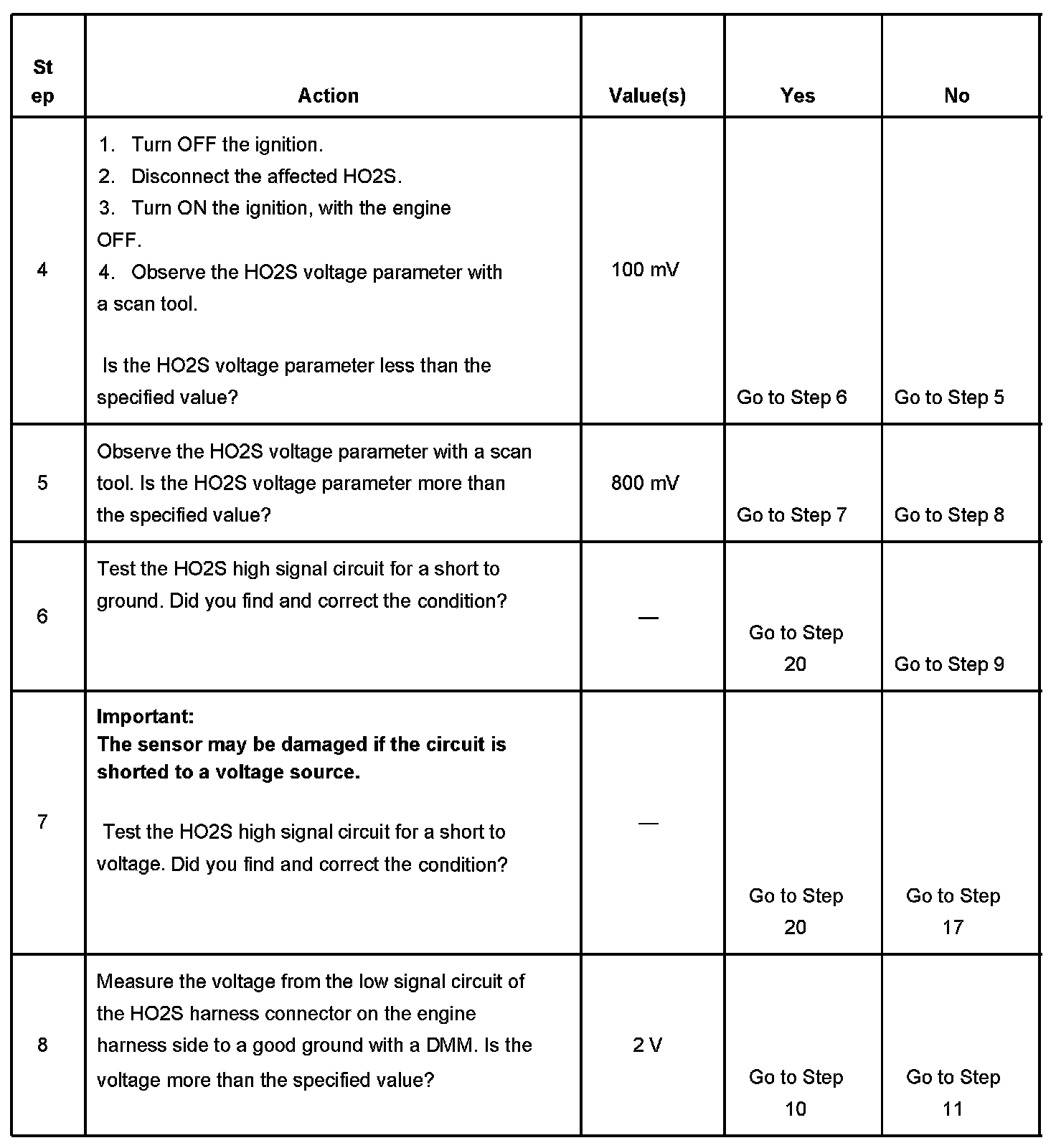 The PCM detects that the affected HO2S voltage parameter is less than 80 mV for 200 seconds.