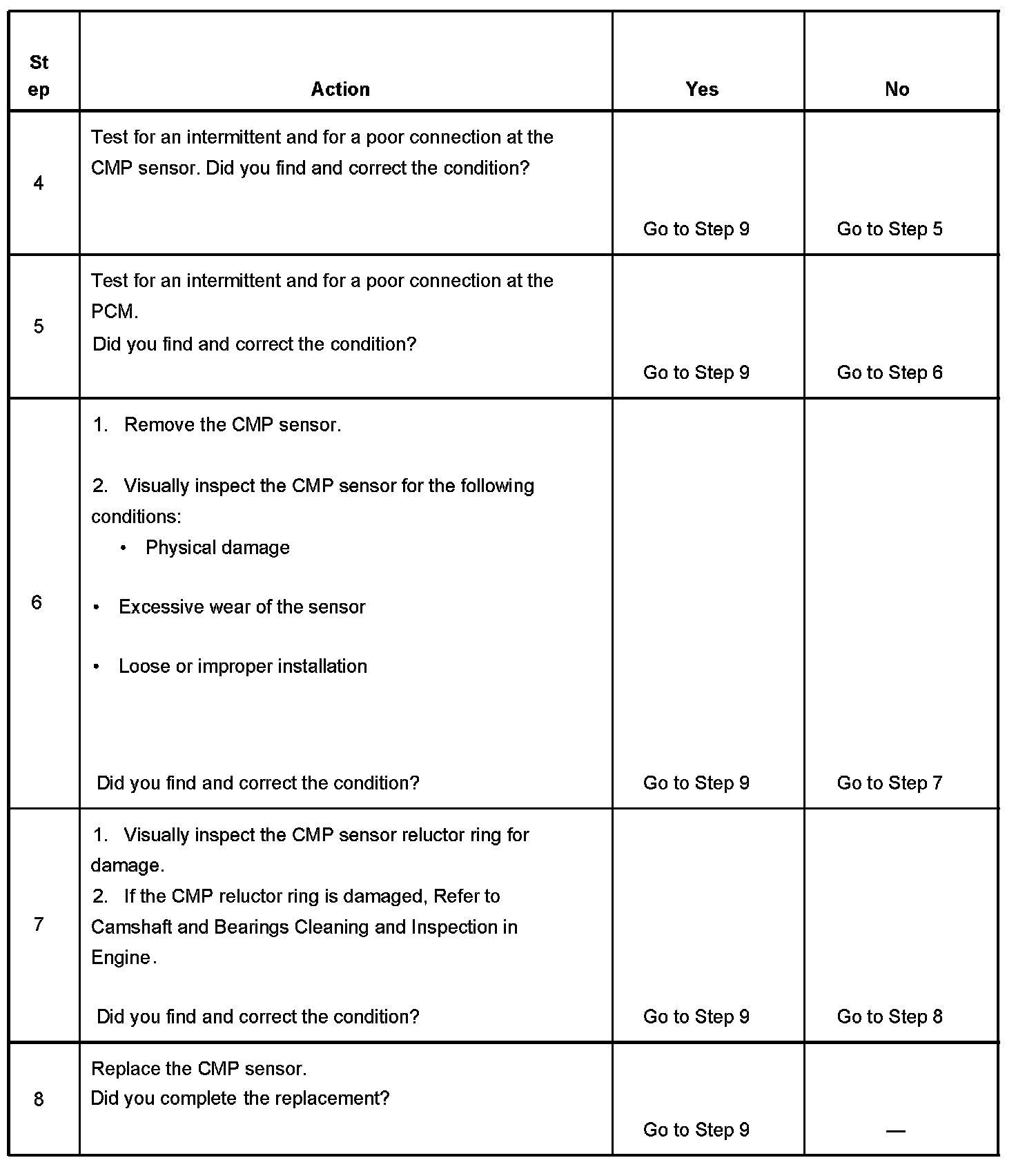 6. Damage to the face of the sensor could indicate foreign material passing between the CMP sensor and the reluctor wheel. This condition would cause this DTC to set. Damage to the reluctor wheel would affect the CMP sensor output.