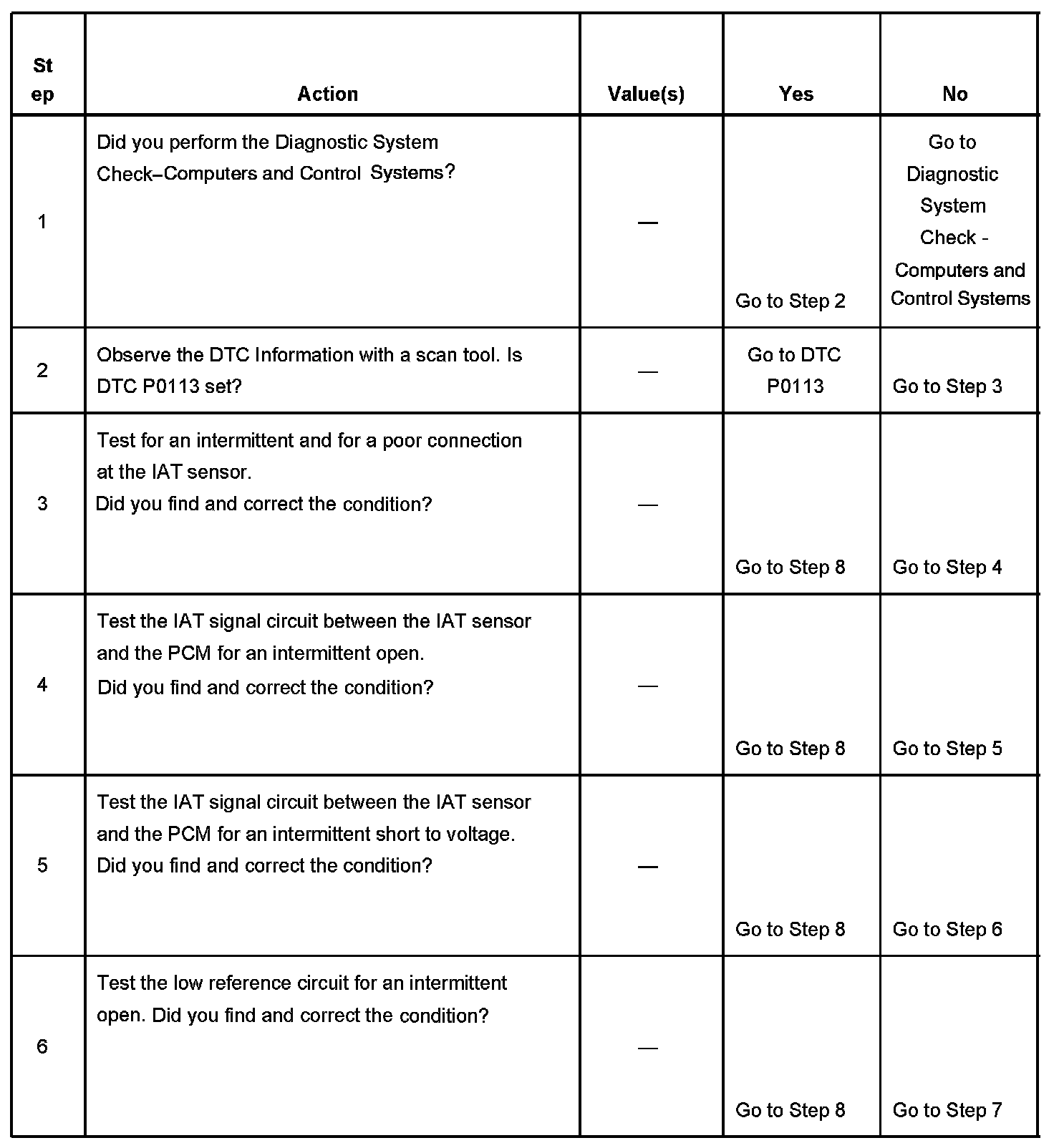 - If an intermittent condition is suspected, refer to Intermittent Conditions. Diagnostic Strategies