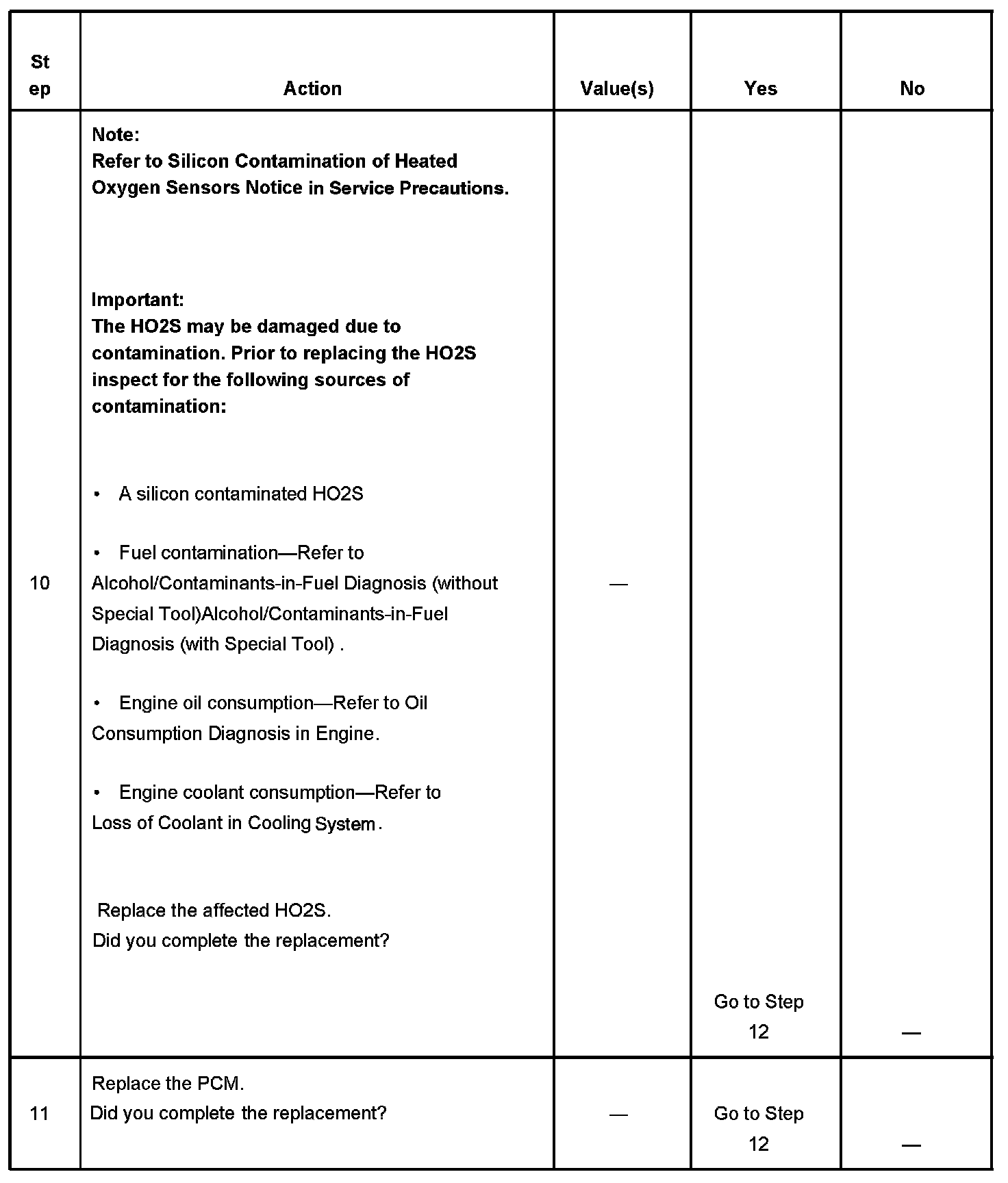Heated oxygen sensors (HO2S) are used for fuel control and post catalyst monitoring. Each HO2S compares the oxygen content of the surrounding air with the oxygen content in the exhaust stream. The HO2S must reach operating temperature to provide an accurate voltage signal. Heating elements inside the HO2S minimize the time required for the sensors to reach operating temperature. The powertrain control module (PCM) supplies the HO2S with a reference, or bias, voltage of about 450 mV. When the engine is first started the PCM operates in open loop, ignoring the HO2S voltage signal. Once the HO2S reaches operating temperature and closed loop is achieved, the HO2S generates a voltage within a range of 0-1,000 mV that fluctuates above and below bias voltage. High HO2S voltage indicates a rich exhaust stream; low HO2S voltage indicates a lean exhaust stream. This diagnostic will only run once per ignition cycle. The PCM monitors the rich-to-lean and lean-to-rich transition time. A transition is defined as, the HO2S voltage changes from above 625 mV to below 250 mV or from below 250 mV to above 625 mV. If the PCM detects that the difference between the rich-to-lean average transition time and lean-to-rich average transition time is more than a specified value, DTC P1134 sets for HO2S bank 1 sensor 1, or DTC P1154 sets for HO2S bank 2 sensor 1.