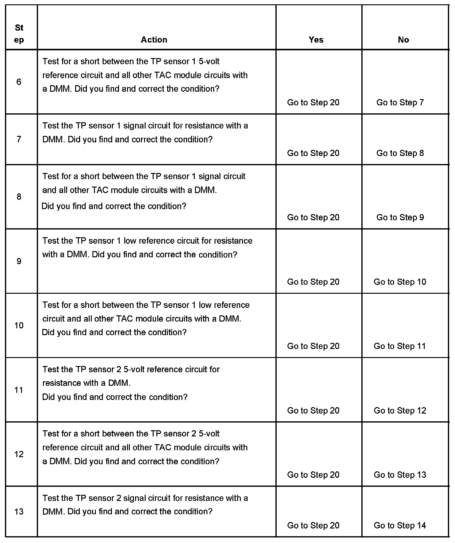 The numbers below refer to the step numbers on the diagnostic table.
