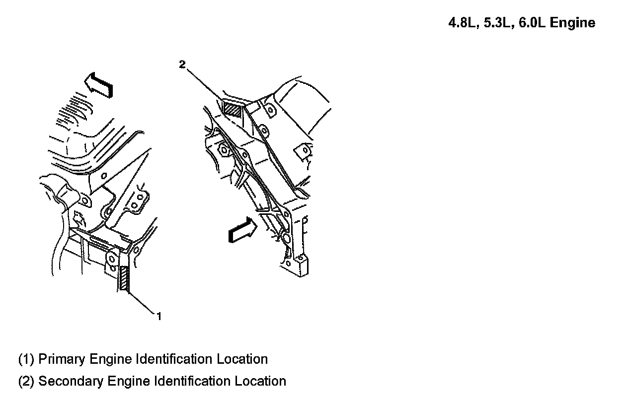 The eighth character in the Vehicle Identification Number (VIN) identifies the engine. Adhesive-backed labels attached to the engine, laser etching or stampings on the engine block indicate the engine unit number/date code. All engines are stamped with a VIN derivative.