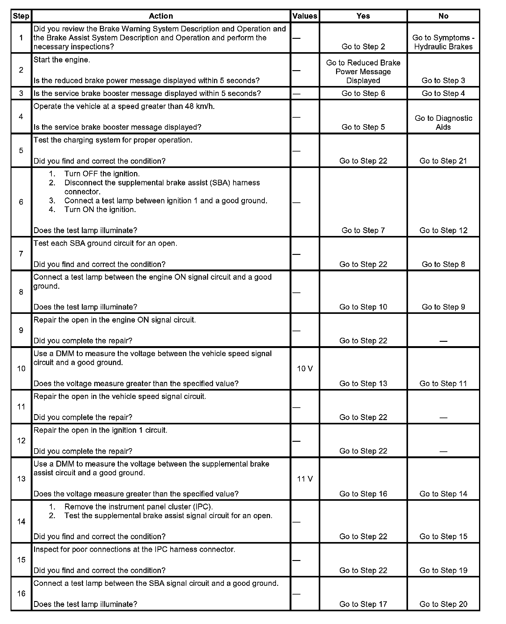 Service Brake Booster Message Displayed