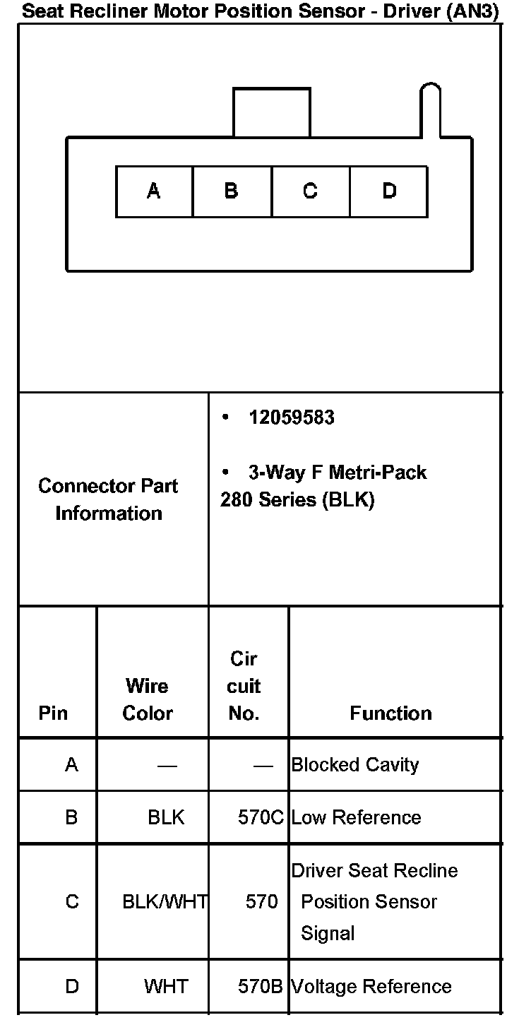 Seat Recliner Motor Position Sensor - Driver (With RPO Code AN3):