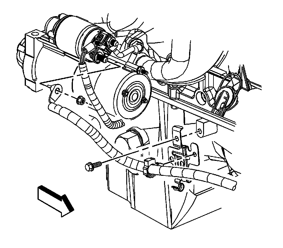 10. Install the positive battery cable clip and bolt to the oil pan.